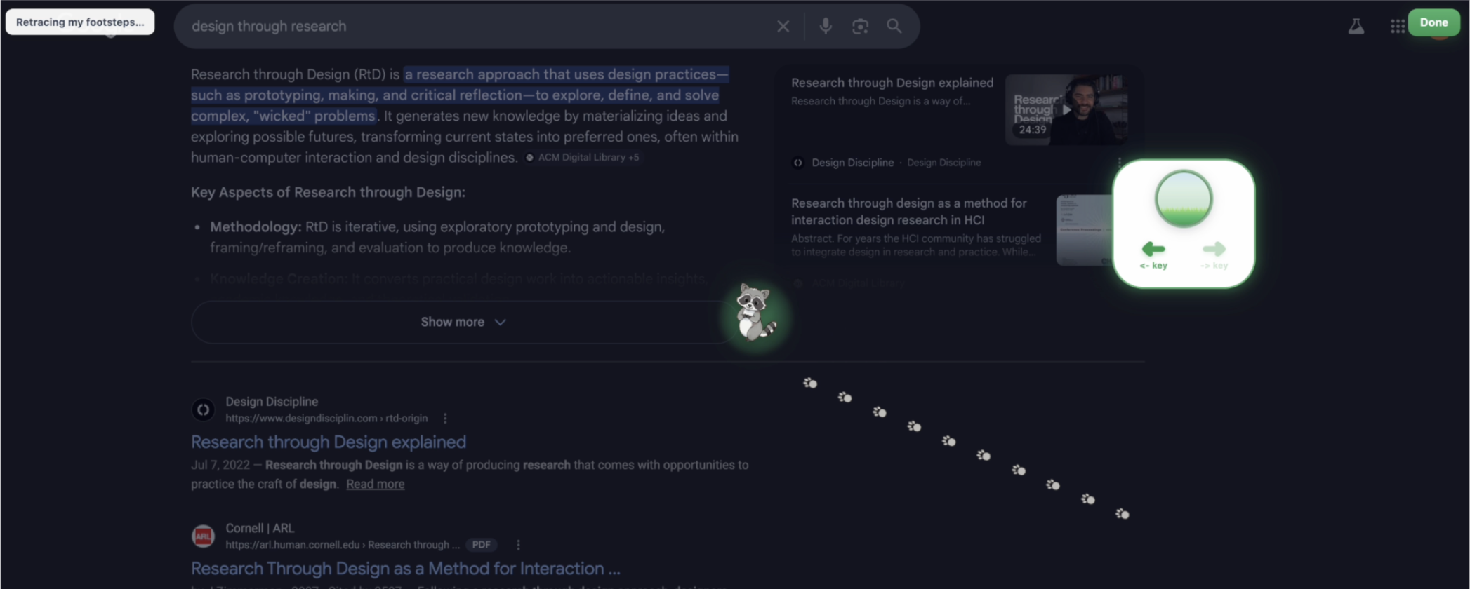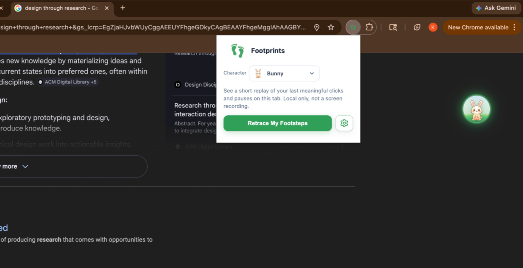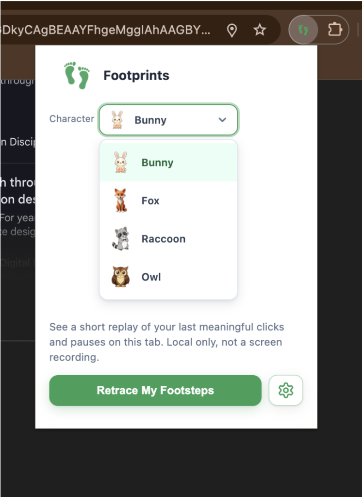 Footprints is a browser extension to help users visually retrace their steps on the browser.