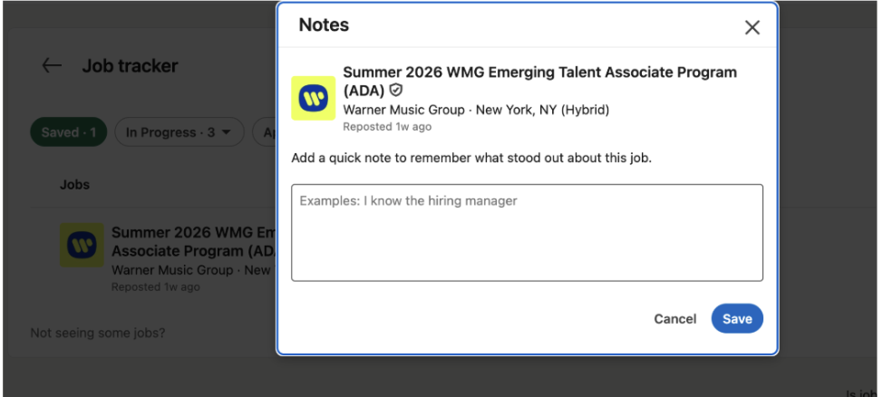This tool exists on LinkedIn. Users can put in a note to remember why they liked the job posting.