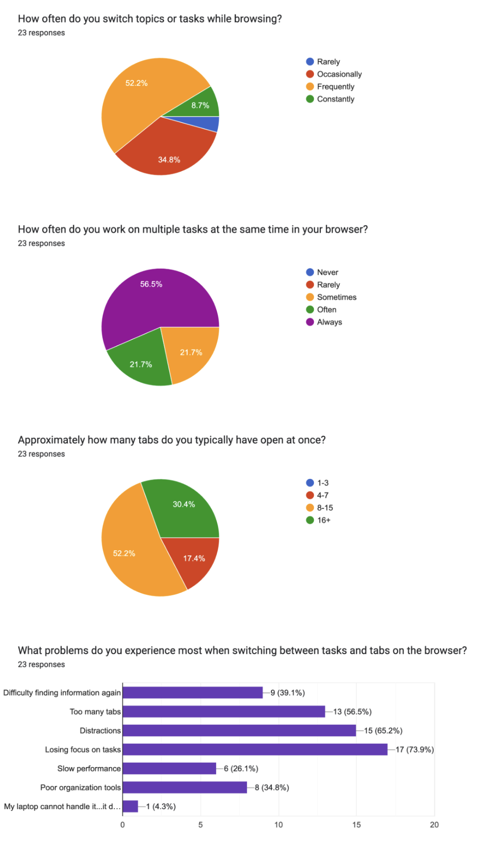 “I was doing a concurrent google search on a task. When returning to the task I see many tabs open for that task, and forgets why I was doing a concurrent google search for that task. What was I trying to find out? Why?”
